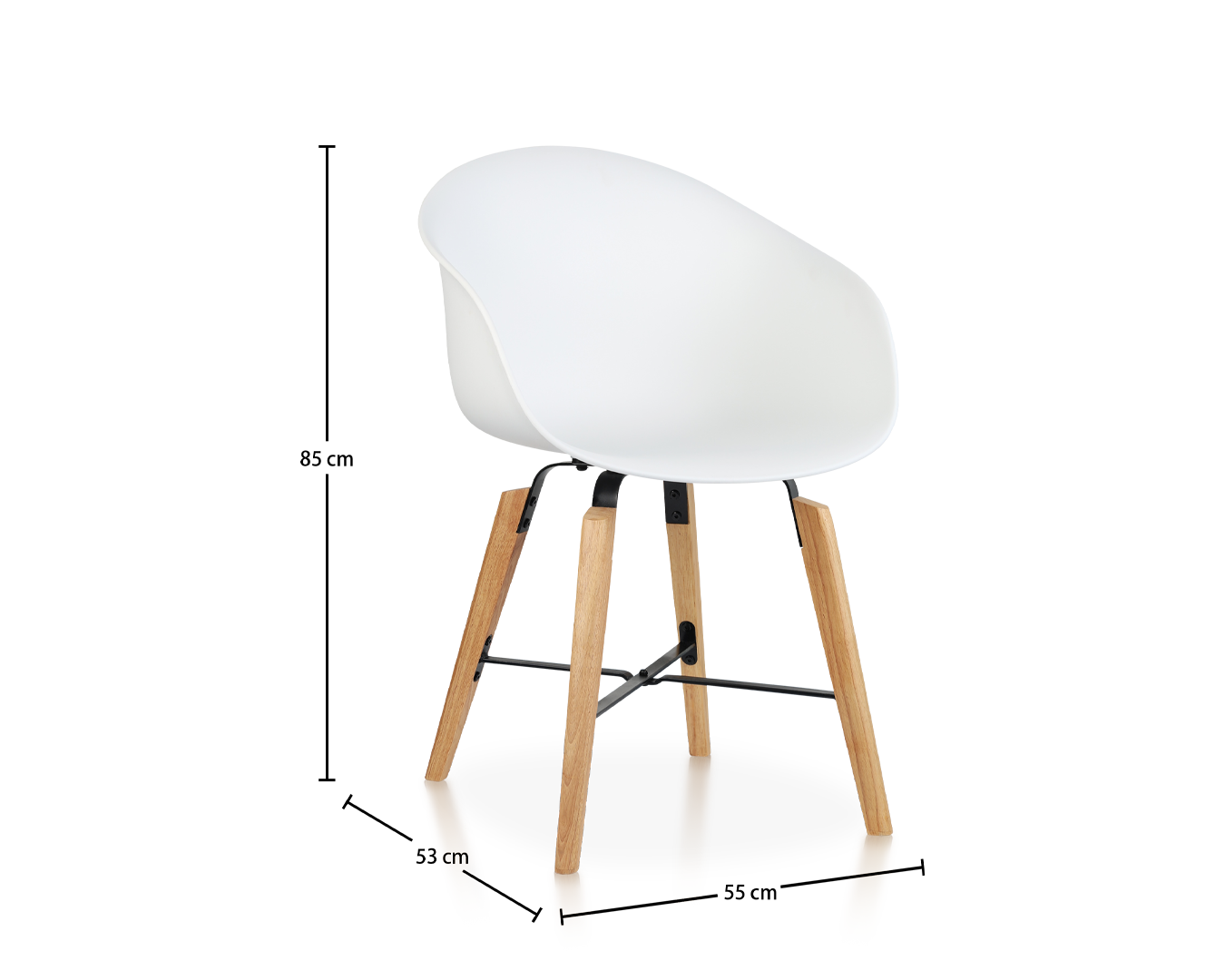 • ছাঁচযুক্ত পলিপ্রোপিলিন থেকে তৈরি, আসনটি টেকসই এবং পরিষ্কার করা সহজ। রাবার কাঠের পা এবং কালো পাউডার-প্রলিপ্ত লোহা সংযোগকারীগুলি উষ্ণতা এবং সমস্ত সাদা বর্ণের বিপরীতে যুক্ত করে।
