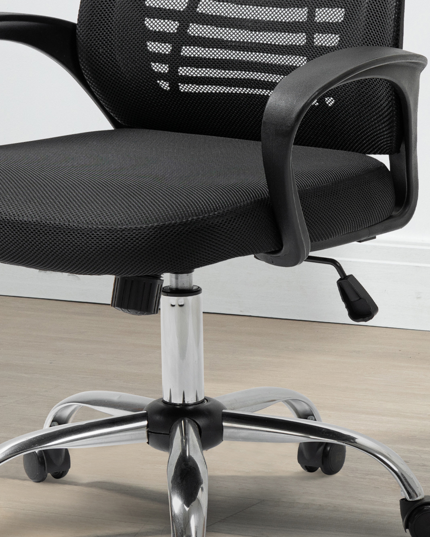 • একটি শ্বাস প্রশ্বাসের ফ্যাব্রিক ব্যাক এবং সিট সহ, আপনি দীর্ঘ ঘন্টা কাজের সময় আরামদায়ক থাকবেন। সামঞ্জস্যযোগ্য উচ্চতা এবং দৃ ur ় নির্মাণ নিশ্চিত করে যে আপনি সমর্থন এবং আরাম বজায় রেখে আপনার আদর্শ বসার অবস্থানটি খুঁজে পেতে পারেন।