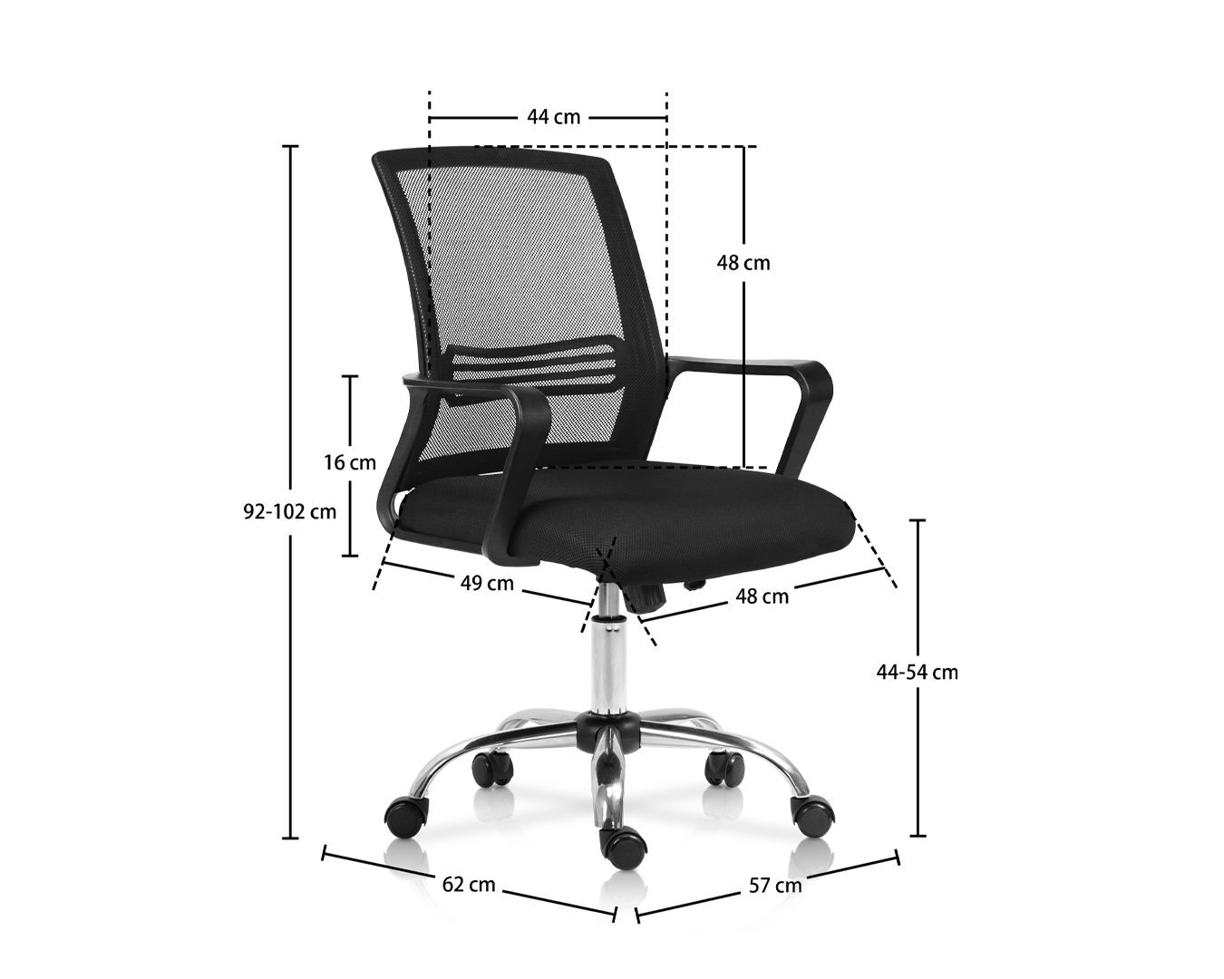 -আকার: ডাব্লু 57*ডি 62*এইচ 92-102 সেমি / এসএইচ: 44-54 সেমি